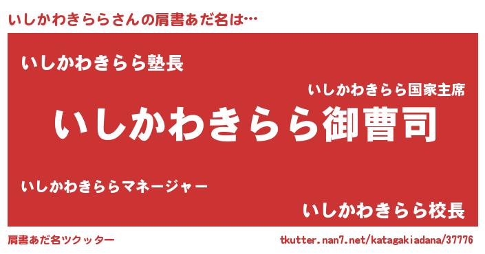 | ポケモン風あだ名 | 『イシチュウ』『ヒイシカワキララ』 |