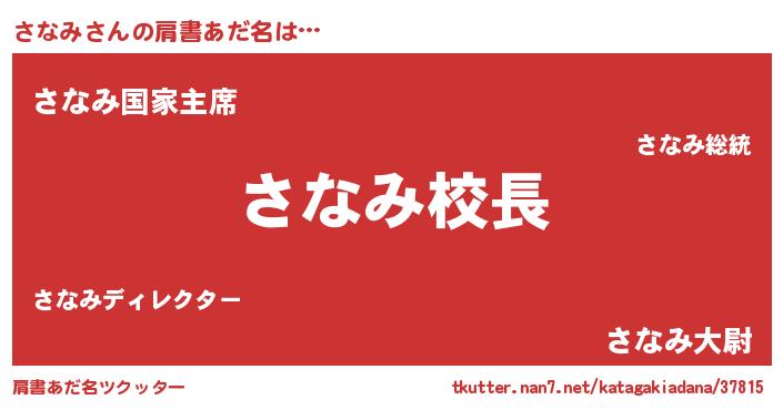 | ポケモン風あだ名 | 『ゼニサナ』『サナミダネ』 |