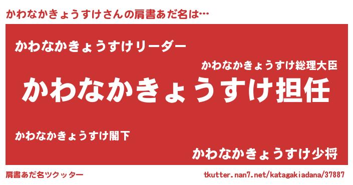 | 男性向けラノベタイトル風あだ名 | 『かわなかきょうすけという概念が存在しない退屈な世界 』 |