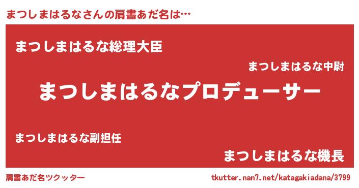 | 男性向けラノベタイトル風あだ名 | 『はたらくまつしまはるなさま!』 |
