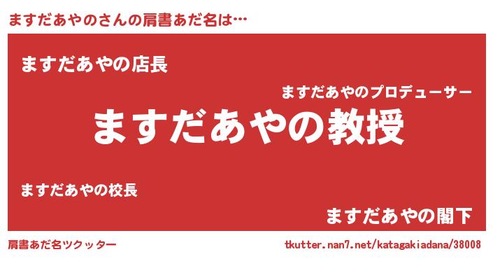 | 男性向けラノベタイトル風あだ名 | 『おまえをオタクにしてやるから、俺をますだあやのにしてくれ! 』 |