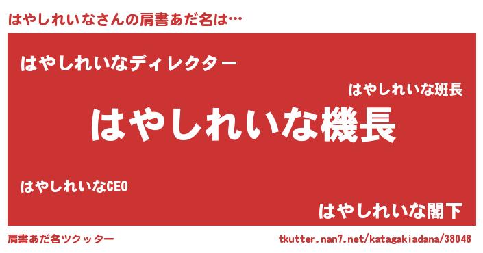 | ヒーロー風カッコイイあだ名 | 『最強戦士ハヤシレイナ』『黄金騎士ハヤ』 |