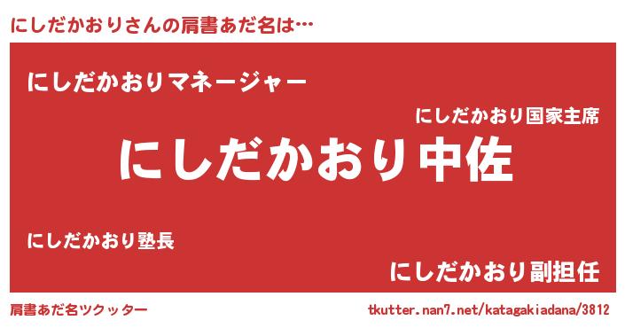 | ヒーロー風カッコイイあだ名 | 『ネオニシダカオリ』『黄金騎士ニシ』 |