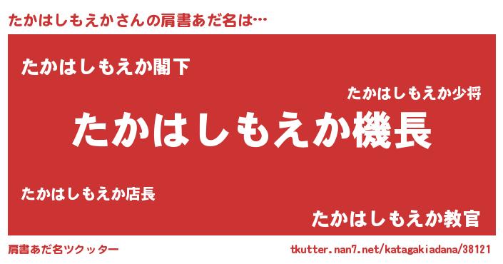 | 欧米人風あだ名 | 『たかはしもえか・ステッグマイヤー』 |
