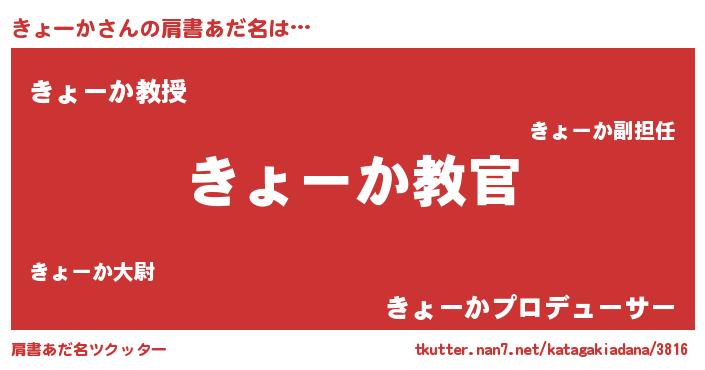 | ヘコむあだ名 | 『きょーか(笑)』『酢こんぶ』 |