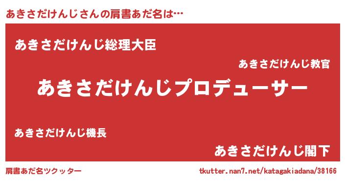 | 男性向けラノベタイトル風あだ名 | 『あきさだけんじに滅ぼされるだけの簡単なお仕事です』 |