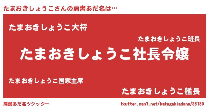 | 女子向けラノベタイトル風あだ名 | 『誰かこのたまおきしょうこを説明してください! ~契約から始まるウェディング~』 |