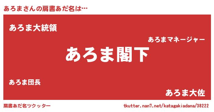 | 意味不明あだ名 | 『自称あろま』『あろまフォーエバー』 |