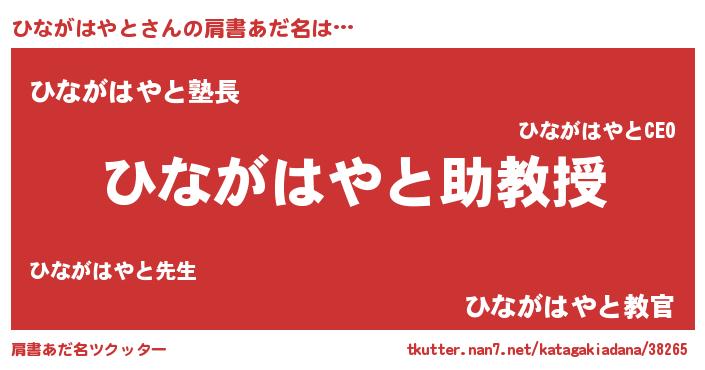 | 女子向けラノベタイトル風あだ名 | 『ひながはやと恋絵巻』 |