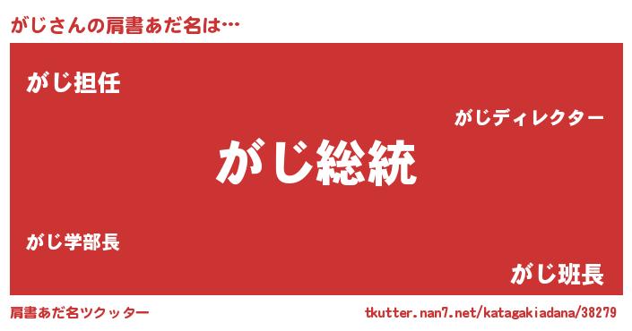 | 意味不明あだ名 | 『自称がじ』『永久保存がじ』 |
