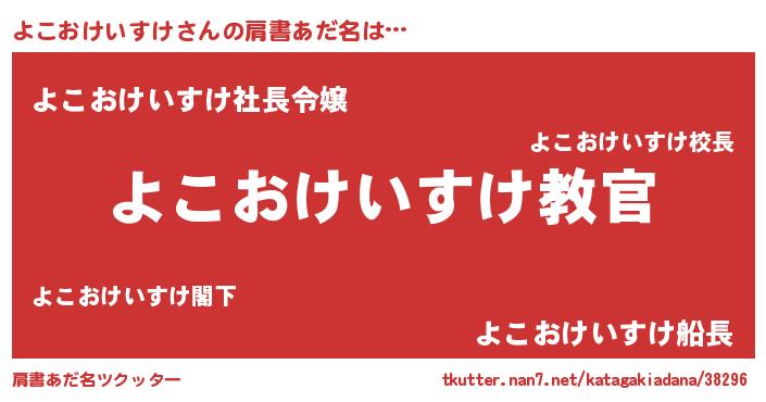 | 女子向けラノベタイトル風あだ名 | 『乙女ゲームの破滅フラグしかない悪役よこおけいすけに転生してしまった…』 |