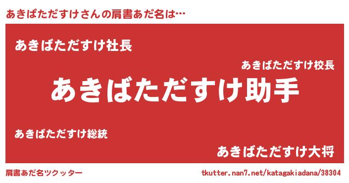| 男性向けラノベタイトル風あだ名 | 『ノーゲーム・ノーアキバタダスケ』 |