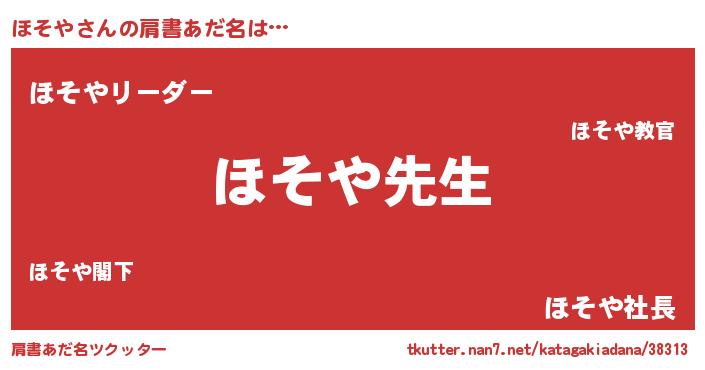 | ヘコむあだ名 | 『ほそや(笑)』『ほそぷりん』 |