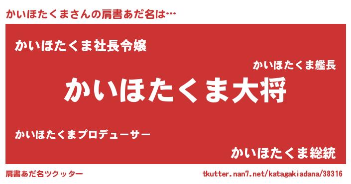| 男性向けラノベタイトル風あだ名 | 『転生したらかいほたくまだった件』 |