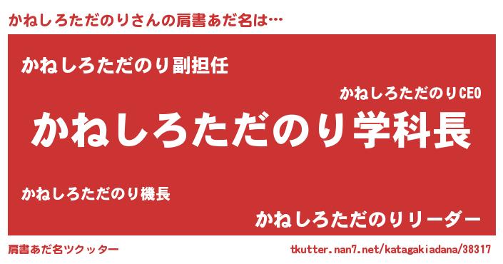 | ヘコむあだ名 | 『かねしろただのり(震え声)』『かねっちょ』 |