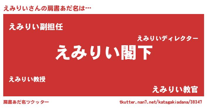 | 男性向けラノベタイトル風あだ名 | 『Re:えみりいから始める異世界生活』 |