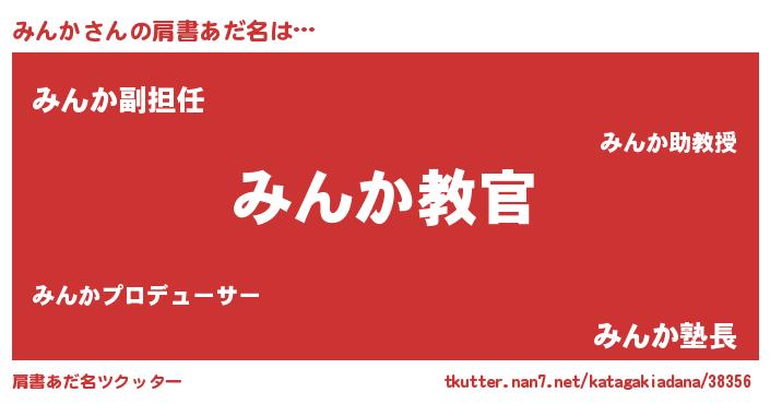| 男性向けラノベタイトル風あだ名 | 『この素晴らしい世界にみんかを!』 |