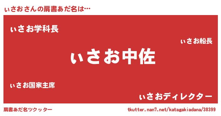 | 男性向けラノベタイトル風あだ名 | 『ぃさお~年齢イコール彼女いない歴の魔法使い~』 |