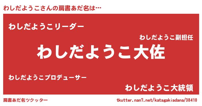 | 男性向けラノベタイトル風あだ名 | 『わしだようこ~年齢イコール彼女いない歴の魔法使い~』 |