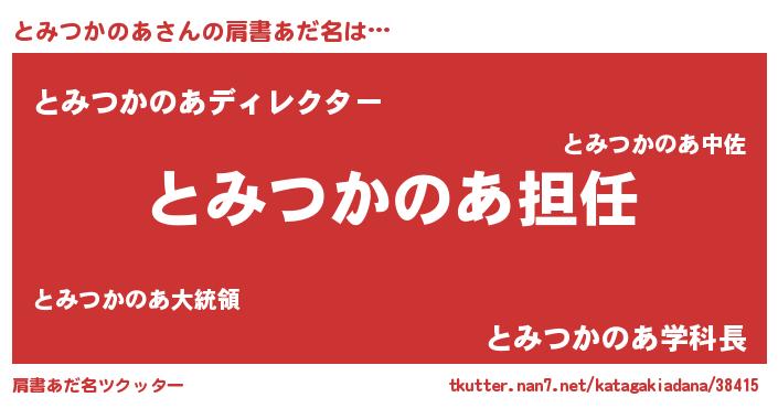 | 胡散臭い通販商品みたいなあだ名 | 『絶対に幸福をもたらす水素水…その名も「とみつかのあ」』 |