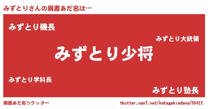 | 男性向けラノベタイトル風あだ名 | 『ミズトリスレイヤー』『緋弾のミズトリ』 |