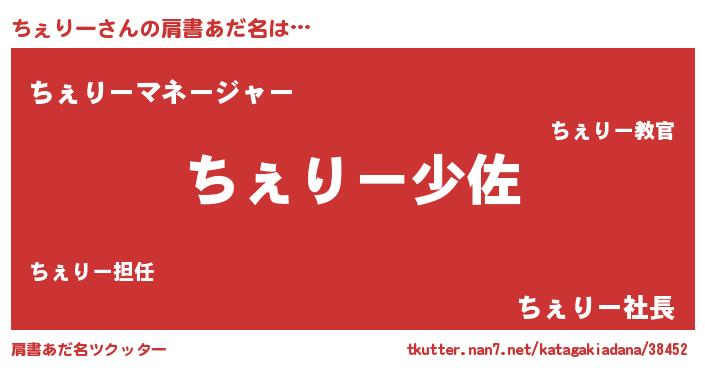 | 女子向けラノベタイトル風あだ名 | 『ちぇりーの玉の輿計画!』 |