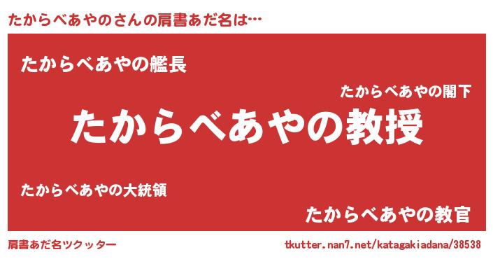 | 男性向けラノベタイトル風あだ名 | 『ノーゲーム・ノータカラベアヤノ』 |