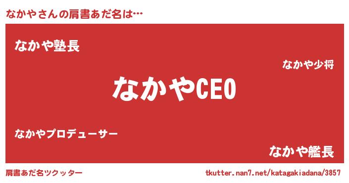 | ヒーロー風カッコイイあだ名 | 『スーパーナカヤ』『黄金騎士ナカ』 |