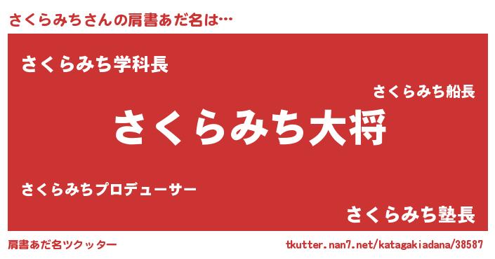 | 男性向けラノベタイトル風あだ名 | 『さくらみち~年齢イコール彼女いない歴の魔法使い~』 |