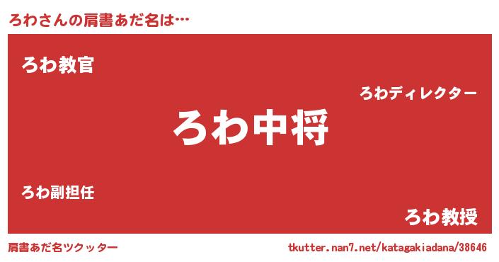 | ヒーロー風カッコイイあだ名 | 『仮面ロワダー』『正義の使者ろわ』 |