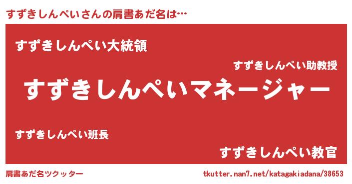 | 男性向けラノベタイトル風あだ名 | 『すずきしんぺいに滅ぼされるだけの簡単なお仕事です』 |