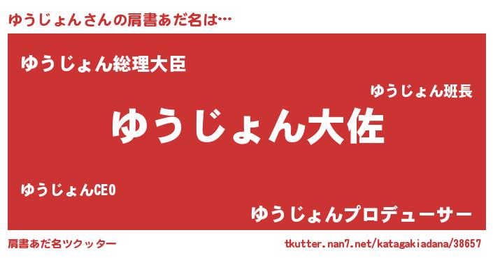 | 男性向けラノベタイトル風あだ名 | 『ゆうじょん~年齢イコール彼女いない歴の魔法使い~』 |
