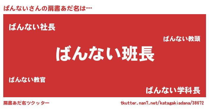 | 意味不明あだ名 | 『とにかく怪しいばんない』 |