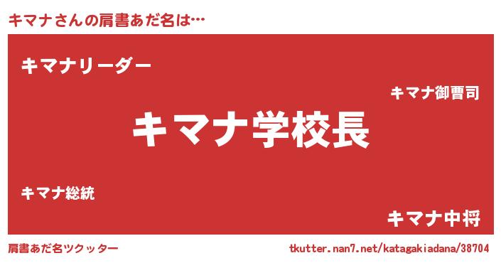| ヒーロー風カッコイイあだ名 | 『慈愛の使者キマナ』『暗黒騎士キマ』 |