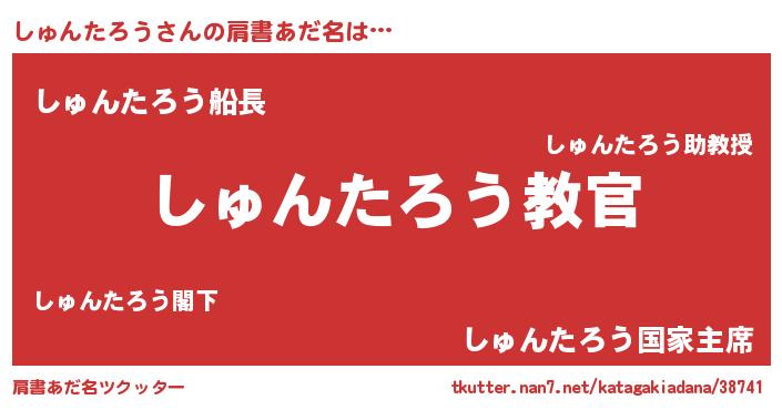 | 男性向けラノベタイトル風あだ名 | 『魔弾の王としゅんたろう』 |