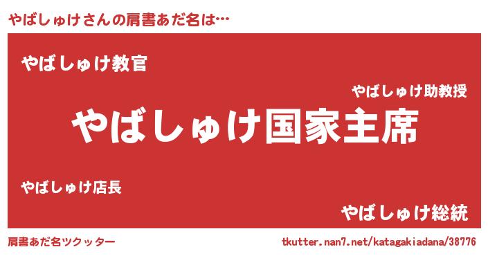 | 男性向けラノベタイトル風あだ名 | 『やはりやばしゅけの青春ラブコメはまちがっている 』 |