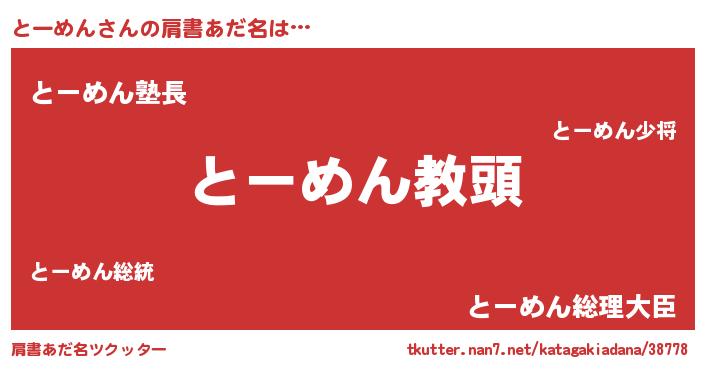 | 意味不明あだ名 | 『永久保存とーめん』『自称とーめん』 |