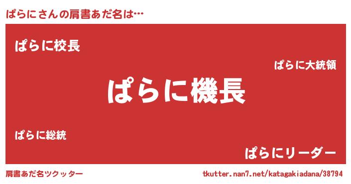 | 意味不明あだ名 | 『永久保存ぱらに』『ぱらにフォーエバー』 |