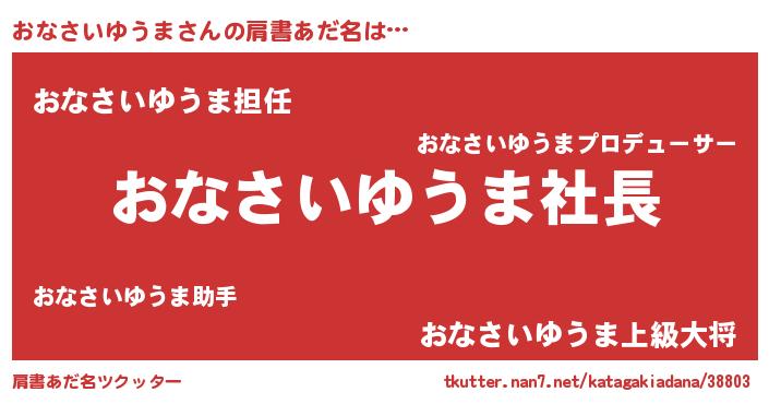 | ヘコむあだ名 | 『おなにー』『おなさいゆうま(震え声)』 |