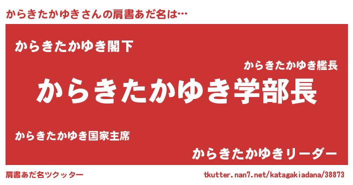 | 男性向けラノベタイトル風あだ名 | 『おまえをオタクにしてやるから、俺をからきたかゆきにしてくれ! 』 |