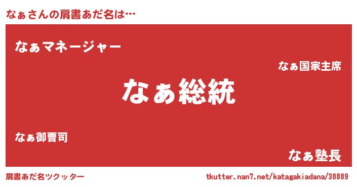 | 欧米人風あだ名 | 『ケンブリッジなぁ』『アンジェラ・なぁ』 |