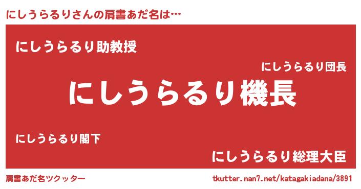 | 欧米人風あだ名 | 『にしうらるり・ステッグマイヤー』 |