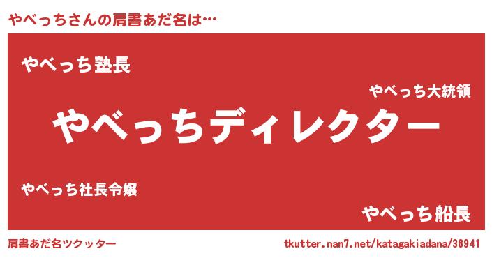 | 男性向けラノベタイトル風あだ名 | 『はたらくやべっちさま!』 |