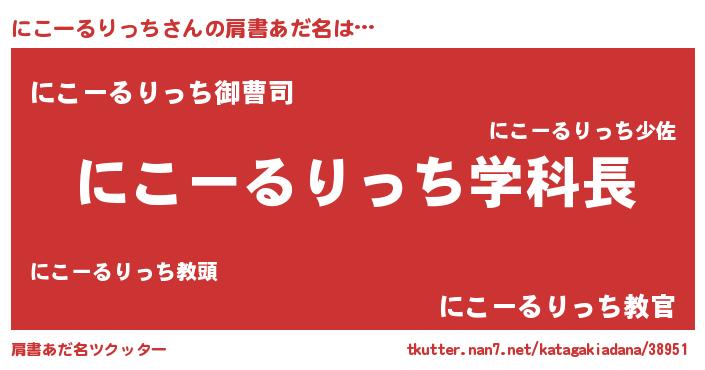| 男性向けラノベタイトル風あだ名 | 『おまえをオタクにしてやるから、俺をにこーるりっちにしてくれ! 』 |