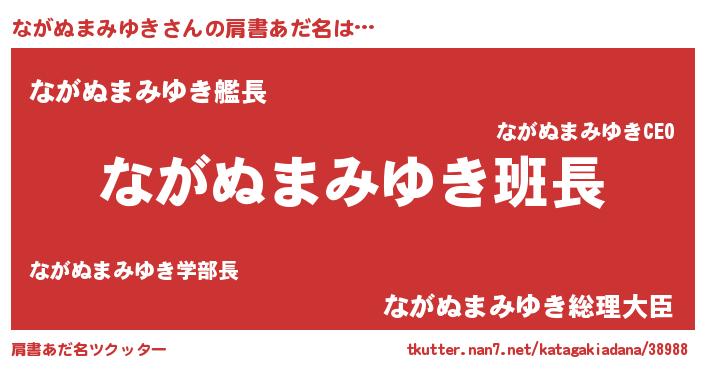 | 男性向けラノベタイトル風あだ名 | 『ダンジョンにながぬまみゆきを求めるのは間違っているだろうか』 |