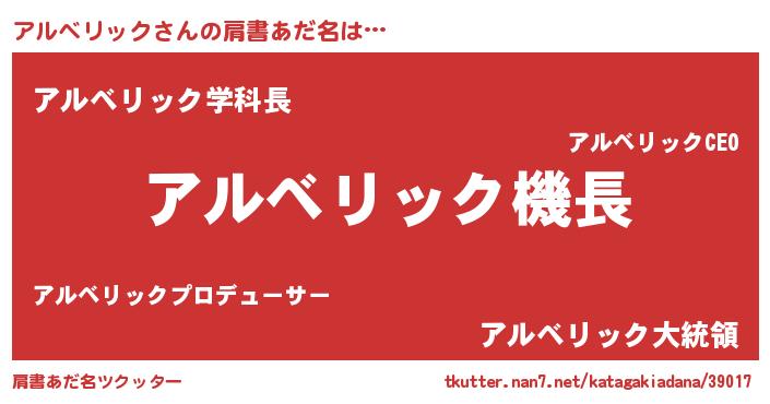 | ヒーロー風カッコイイあだ名 | 『友情の使者アルベリック』 |