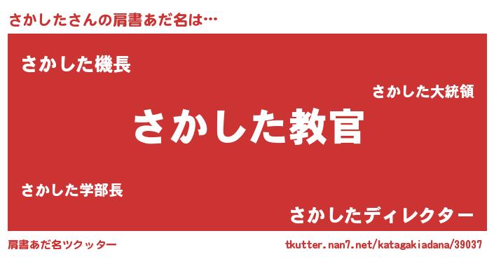 | 男性向けラノベタイトル風あだ名 | 『この素晴らしい世界にさかしたを!』 |