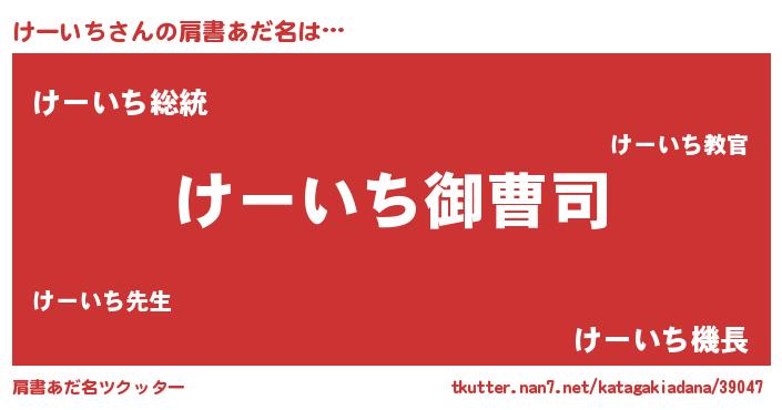 | 意味不明あだ名 | 『ペロリンけーいち』『自称けーいち』 |