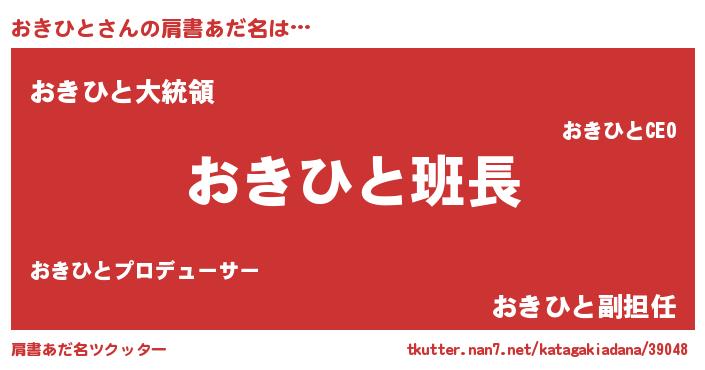 | 欧米人風あだ名 | 『ウサインおきひと』『マイケルおきひと』 |