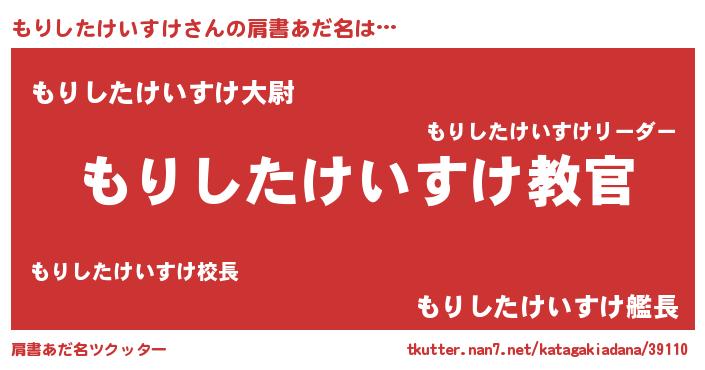 | 意味不明あだ名 | 『住所不定無職もりしたけいすけ(86歳)』 |